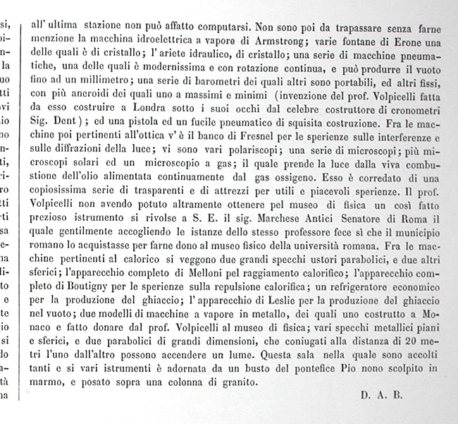 “Museo di Fisica nell’Archiginnasio Romano”. Con tavola incisa in rame. Da: P. CACCHIATELLI G. CLETER, Le Scienze e le arti sotto il pontificato di Pio IX, Roma, Tip. Delle Belle Arti [1860 – 1869]