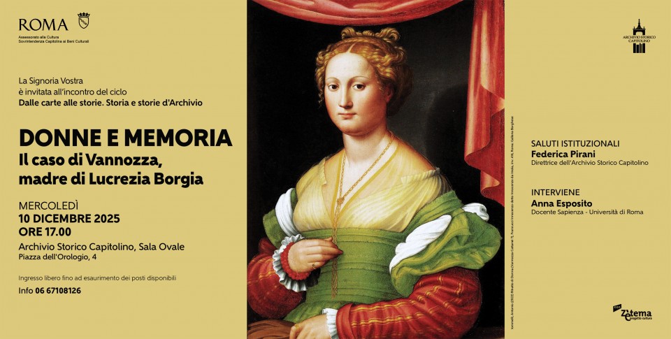 Nell'ambito del ciclo di iniziative Dalle carte alle storie: Storia e storie d'Archivio, il giorno 10 dicembre 2025 presso la Sala Ovale dell'Archivio Storico Capitolino avverrà l'incontro: